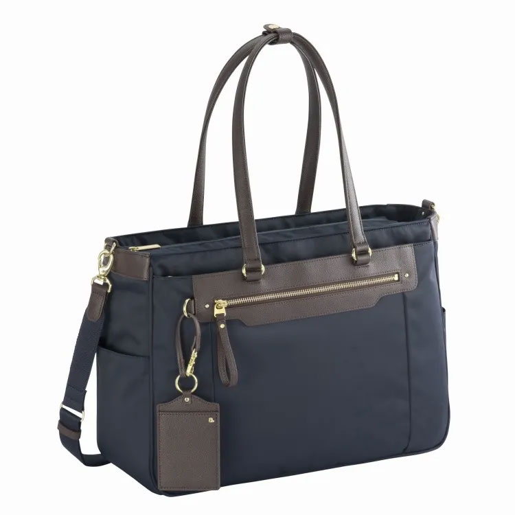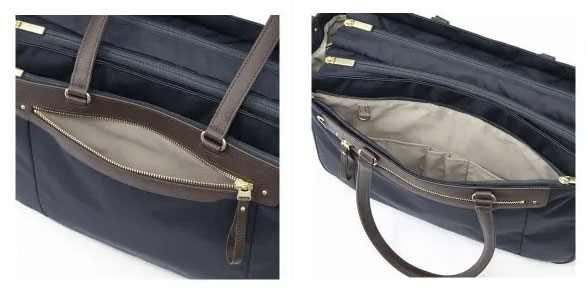 かばん素材には、綾織りで上質な光沢感のあり、耐久性と撥水性に優れたナイロンツイル素材を採用、手が触れるハンドル部とジップ引手には手に馴染む牛革を用いています。