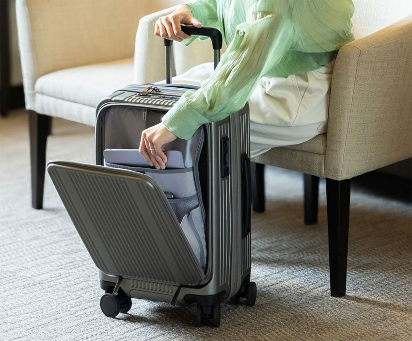 使い勝手抜群!大容量フロントポケットを搭載した、機内持込み可能なキャリーケース