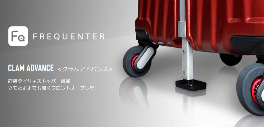 エンドー鞄のキャリーケースブランド「フリクエンター」のクラムアドバンス(CLAM A)シリーズは、静粛タイヤにストッパー機能、立てたままでも荷物を出し入れできるフロントオープンポケットなど、便利で欲しい機能をしっかり搭載した、機能派スーツケースシリーズです。