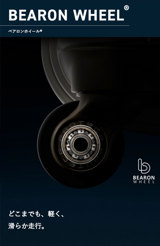 ベアロンホイール®・・・摩擦抵抗を極限まで抑えた、高耐久性クロム鋼ベアリングを採用し、滑るように滑らかな走行を可能にした独自開発のホイール機構。