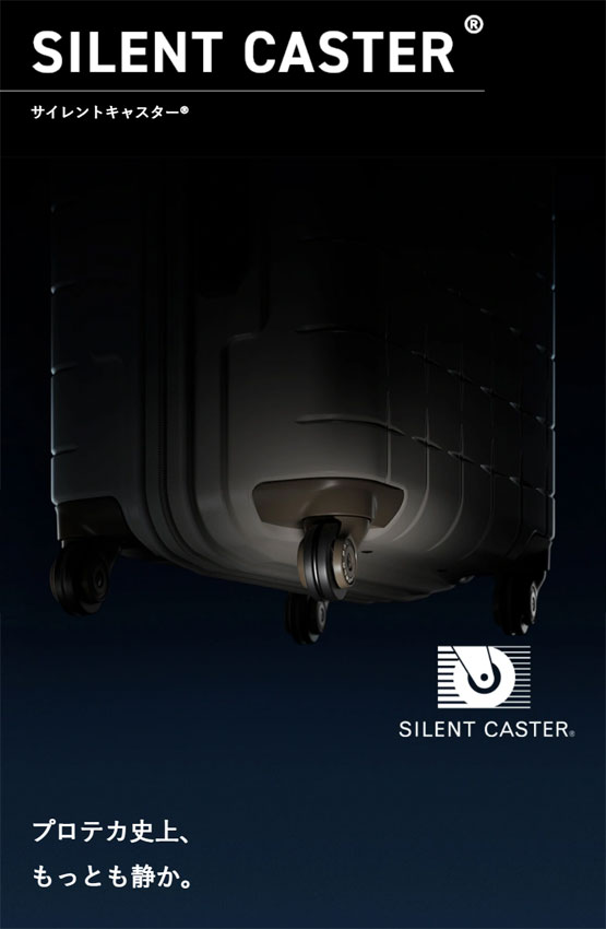 さらに、マックスパス4は、機内持ち込み可能・大容量・軽量性だけでなく、キャスターストッパー®、サイレントキャスター®、ベアロンホイール®といったプロテカが誇る独自開発技術を惜しみなく搭載した、機能性抜群のスーツケースになっています。